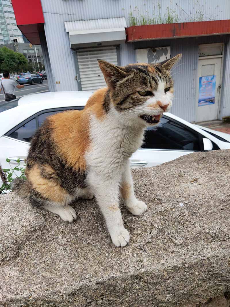 今天去青岛海洋地质所办事时,在门口拍到的猫,一点儿都不怕人,可以撸!有些瘦,可惜我没带猫粮喂它。