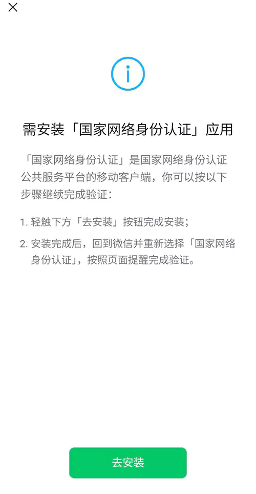 今天在加微信好友时,突然跳转一个页面,让我安装“国家网络身份认证”App。