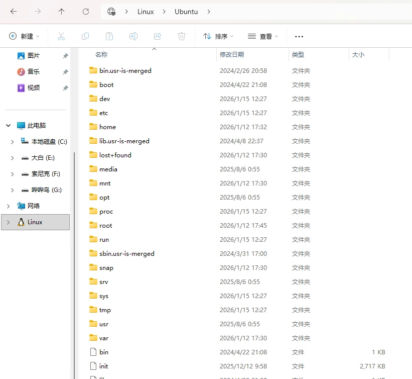 Ubuntu系统中的文件可以直接在Windows资源管理器中访问,如图: